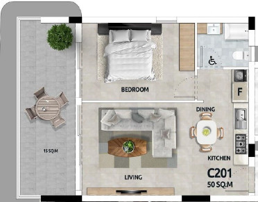 This modern one bedroom apartment is located in the highly desirable Livadia area of Larnaca, just 900 meters from the sea and close to all essential amenities. The apartment offers 49 sq.m of covered internal space and 13 sq.m covered veranda, providing comfortable indoor and outdoor living areas.