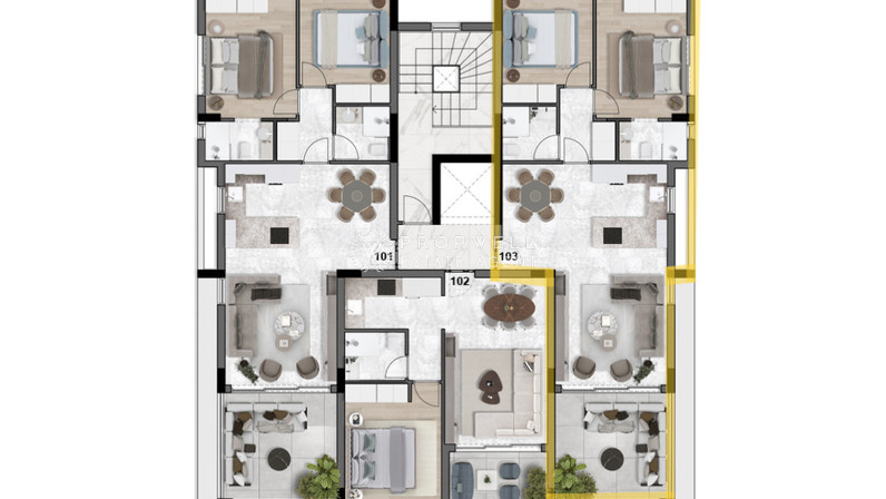 This modern two bedroom apartment is offered under construction and is located in Agios Athanasios, Limassol, a popular residential area with easy access to the city center, the highway and all essential amenities.